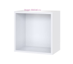 Навесная закрытая полка для гостиной Сириния. Створка белого цвета, матовая с рельефом, внутри нет дополнительных полок и отделений. Настенная полка выпускается в трех цветах: белом, голубом и розовом. Задняя стенка из ЛДВП белого цвета, роль ручек выполняют торцы фасадов.