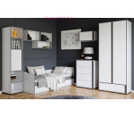 Закрытая настенная полка. Навесная полка белого цвета со вставками в цвете графит. Настенная полка входит в серию мебели для детской комнаты Асцелла.