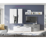 Настенный шкаф для модульной гостиной Альберо с открытыми и закрытыми полками в стильном сочетании белого и темно-серого цвета.