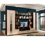 Недорогая элегантная стенка для гостиной. Гнутые стекла с пескоструйной обработкой и фьюзингом. Гостиная Венеция с платяным и бельевым шкафами и витринами для посуды или книг станет универсальным решением для небольшой квартиры.