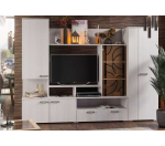 Недорогая стенка в гостиную в светлым цвете с лаконичным дизайном. Гостиная с платяным шкафом и закрытым шкафом для книг или посуды. Стенка впишется в любой интерьер и станет идеальным дополнением вашей квартиры, а матовая стеклостворка с пескоструйным рисунком внесет неповторимую изюминку. Гарнитур выпускается в трех цветовых решениях, имеет вместительный шкаф, оснащенный выдвижной евроштангой, где ваши вещи будут всегда в идеальном состоянии, так же удобные и вместительные ящики и разнообразные полки помогут разместить множество вещей, поддерживая идеальный порядок в комнате.