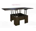 Недорогой журнальный стол с простым и надежным механизмом трансформации позволяет за одну минуту изменить размер стола в нужном для Вас варианте, открыв одну или две его стороны. Стол трансформер может стать полноценным обеденным столом и позволит сэкономить пространство гостиной.