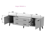 - Размеры тумбы для ТВ (ШхВхГ): 1600х560х390 мм;