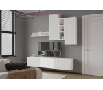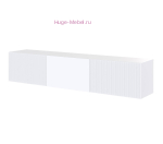 ТВ тумба 190 см для гостиной Сириния белого цвета с гладкими и рельефными фасадами. Тумба с тремя отделениями внутри без ручек на фасадах, роль ручек выполняют торцы створок. Парящую тумбу можно дополнить опорами для напольной установки, опоры продаются отдельно. Тумбу для телевизора можно дополнить навесными шкафами и полками из той же серии мебели.
