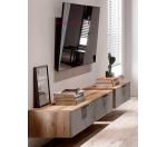 Универсальная тумба с 2 выдвижными ящиками может использоваться как напольная или как подвесная. Тумба продается с креплением к стене. Тумба шириной 140 см с серыми фасадами из МДФ с геометрическим рисунком и корпусом под дерево, два выдвижных ящика полного выдвижения.