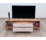 Современная тумба для телевизора шириной 180 см. Тумба Парус-13 с двумя выдвижными ящиками и двумя закрытыми полками. Тумба ТВ с ручками и опорами золотого цвета выпускается в сочетании светлого бежевого цвета кашемир и золотистого дерева. Качественная фурнитура (ящики полного выдвижения и петли с доводчиками) обеспечит долгий срок службы.