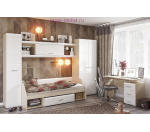 Недорогой письменный стол с белыми глянцевыми фасадами может дополнительно комплектоваться полкой или пеналом.