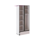 2-створчатый шкаф с полками и штангой для одежды. Шкаф для детской комнаты Асцелла выпускается со скошенным фасадом без лицевой фурнитуры. Удобный выдвижной ящик на шариковых направляющих. Шкаф выполнен в белом матовом цвете и декорирован серыми вставками.