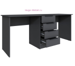 Письменный стол шириной 180 см с 4 выдвижными ящиками. Стол визуально разделен тумбой с выдвижными ящиками на две части. Стол в цвете графит входит в серию мебели Мадрид и сочетается со стеллажами, шкафами и навесными полками из той же серии, что удобно для создания комплекта мебели.