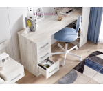 Недорогой письменный стол с выдвижными ящиками и открытыми полками. Стол сочетается с другой мебелью из серии Гранд и подходит для детской комнаты или домашнего кабинета.