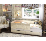 Корпус детской кровати Дельфин КР-813 продается без фасадов для выдвижных ящиков и защитного бортика. Каркас кровати 80х180 см выпускается в цвете дуб белфорт. Основание под матрас - цельный лист.