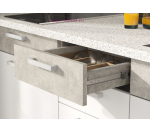 - Роликовые направляющие ящиков и четырехшарнирные накладные петли.