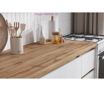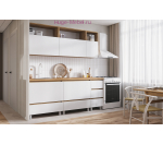 Недорогая кухня Хелен белого цвета с корпусом под дерево длиной 2 метра представляет собой готовый к монтажу комплект кухонной мебели. В стоимость кухонного гарнитура входит цельная столешница "Дуб вотан" толщиной 38 мм.  В комплект входят 6 кухонных шкафов, три верхних и три нижних, размеры  секций 40, 80 и 80 см.