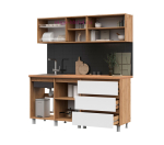 Недорогой кухонный гарнитур шириной 170 см полностью готов к установке и продается в комплекте со столешницей толщиной 38 мм. Кухня в скандинавском стиле с прямыми фасадами без ручек. Белые фасады в сочетании с тёплым оттенком дерева создают ощущение уюта и вписываются в любой интерьер. Бархатистая матовая фактура фасадов не сохраняет отпечатков. Продуманные кухонные модули с качественной фурнитурой позволят организовать хранение посуды и кухонных принадлежностей и поддерживать идеальный порядок на небольшой кухне.