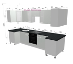 - В комплект кухонного гарнитура входят шкафы верхние и нижние с корпусом из ЛДСП и фасадами МДФ, ручки, петли, регулируемые опоры, нижний цоколь в цвет корпуса. Стеновые панели, столешницы, мойка и сушка приобретаются отдельно и в стоимость комплекта кухни не входят.