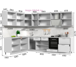 Большая угловая кухня 3 на 2.2 метра с белыми матовыми фасадами МДФ. Кухонный гарнитур модульный и его размеры и комплектацию можно изменить.