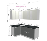 Маленькая угловая кухня состоит из отдельных модулей и может быть изменена по вашим размерам. Верхние шкафы с глянцевыми фасадами белого цвета помогут визуально расширить пространство небольшой кухни, а нижние матовые кухонные шкафы с фактурой бетона уберегут от пятен. Размеры кухонного гарнитура позволят разместить его в небольшой кухне в квартире-студии или в "хрущевке".
