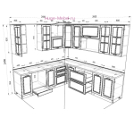 - Высота кухни: 240 см (высота верхних шкафов 92 см);