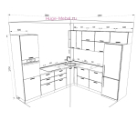 - Размеры кухни по стене: 2800х2550 мм (2.8х2.5 метра);
