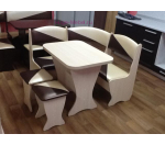 Недорогой кухонный уголок подойдет для небольшой кухни и состоит из стола, углового дивана и табуретов.