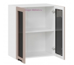 Кухонный шкаф верхний со стеклом для модульной кухни Сахара с фасадами МДФ в цвете холст латте. Размеры шкафа:
