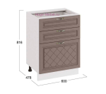 пластиковые регулируемые ножки, нижний цоколь из ЛДСП. Кухонный шкаф нижний с тремя ящиками продаётся без столешницы, схема сборки кухонного шкафа в комплекте.Рекомендуемая мебель - популярное в нашем магазине