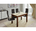Современный обеденный раскладной стол на качественных опорах из МДФ. Столешница стола из стекла лакобель.