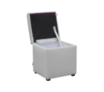 - Недорогая белая банкетка с ящиком подходит для прихожей и спальни.