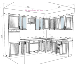 - Размер кухни по стене: 2000х3000 мм (сборка универсальная, на правую и левую стороны);