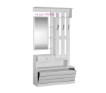 Удобная напольная вешалка для прихожей Ямайка с зеркалом, тумбой для обуви, крючками для одежды и полками. Вешалка подходит для небольших прихожих и узких коридоров.
