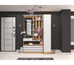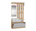 Удобная напольная вешалка для прихожей Ямайка с зеркалом, тумбой для обуви, крючками для одежды и полками. Вешалка подходит для небольших прихожих и узких коридоров.
