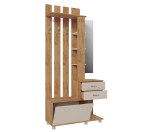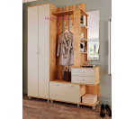 Недорогая прихожая шириной 1 метр. Небольшие размеры прихожей не сказываются на её функциональности: вешалка для одежды, зеркало с полками, два выдвижных ящика для перчаток и мелочей и тумба для обуви. Дополнительно к прихожей можно купить узкий шкаф для одежды с выдвижной штангой.