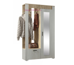 Небольшая и узкая прихожая длиной всего 120 см несмотря на свои компактные размеры сочетает в себе всё необходимое для хранения вещей: вешалку для одежды, небольшой шкаф с зеркалом и отсеки для обуви. Прихожая Франк выпускается в двух цветовых решениях: золотистый крафт и белый ясень и венге/лоредо.