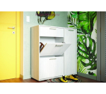Недорогая светлая обувница Дели-4 с двумя отделениями для обуви и выдвижным ящиком. За распашной створкой отсек с полкой для хранения средств ухода для обувью. Обувницы Дели выпускаются фабрикой мебели Стендмебель в трех цветах: венге/дуб, ясень шимо и анкор.