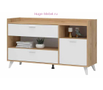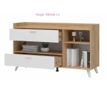 Комод шириной 140 см с двумя выдвижными ящиками, отделением с дверцей и двумя открытыми нишами. Комод с высокими ножками белого цвета. Недорогой комод сочетается с другими предметами мебели из серии Ирис и подходит для любого помещения: прихожей, гостиной, спальни и детской комнаты.