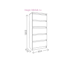- Недорогой высокий комод с 5 выдвижными ящиками на шариковых направляющих. Узкий комод высотой 120 см с отделкой под темное дерево.