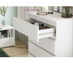 Высокий недорогой комод с 5 выдвижными ящиками на шариковых направляющих. Комод из серии мебели Хелен выпускается в двух цветах: белый и сочетание белого и дуба крафт.