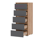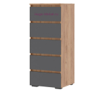 Высокий недорогой комод с 5 выдвижными ящиками на шариковых направляющих. Комод из серии мебели Хелен выпускается в нескольких цветах: серый или белый в сочетании с деревом и полностью белый.