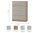 Высокий комод с 4 выдвижными ящиками Эмилия выполнен в спокойных оттенках натуральных оттенках. Недорогой комод с оригинальной фрезеровкой, качественными фасадами МДФ и ящиками полного выдвижения подходит для спальни и гостиной. Ширина комода 80 см, а высота 113 см.