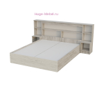 Комфортная двуспальная кровать с прикроватными тумбами и полкой (прикроватным блоком). Кровать Бася рассчитана на большую нагрузку: основание кровати дополнительно укреплено двумя опорами по всей длине кровати. Кровать выполнена из качественного ЛДСП с фактурой натурального дерева. Прикроватные тумбы с двумя закрытыми отделениями (распашные дверцы). В изголовье кровати открытая ниша и широкая полка с откидной дверцей.