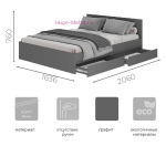 Двуспальная кровать с двумя выдвижными ящиками в стильном цвете графит серый. Кровать со спальным местом 160х200 продается в комплекте с надежным реечным основанием под матрас. Кровати Симпл выпускаются в двух цветах: графитовом сером и белом.