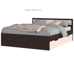Двуспальная кровать 160х200 с двумя выдвижными ящиками. Надежная конструкция с прямым основанием под матрас, выдвижные ящики можно поставить на правую и левую сторону кровати. Кровать выпускается в темном цвете венге, ящики и изголовье светлое дерево белфорт. Основанием под матрас служат планки ДВП шириной 140 мм.
