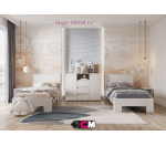 Недорогая современная кровать продается вместе с ортопедическим основанием под матрас. Кровать входит в серию мебели Хелен и выпускается в трех цветах: белая кровать, сочетание белого и дуба крафт, сочетание серого и дуба крафт.