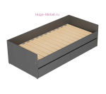 Кровать трансформер Симпл графит удобна в использовании в небольших помещениях: при необходимости её можно раздвинуть и увеличить спальное место. Кровать оснащена двумя выдвижными ящиками для белья. Спальное место: 924*2000 мм, в разложенном виде: 1800*2000 мм - таким образом из односпальной кровать трансформируется в двуспальную. Основание для кровати в комплекте - ламели для раздвижных кроватей.