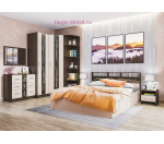 Эффектная двуспальная кровать с открытой нишей в изголовье. Кровать продается в комплекте с основанием под матрас. Фасады мебели для спальни Эрика декорированы черным стеклом с рисунком.