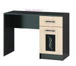 Недорогой стол косметический для спальни Эрика. Туалетный стол с выдвижным ящиком и распашной дверцей декорирован вставкой из черного стекла с рисунком. Компактный стол можно дополнить настенным зеркалом.