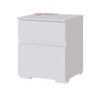 Прикроватная тумба Плейона белого цвета с двумя выдвижными ящиками. Скошенные фасады заменяют ручки на фасадах, направляющие ящиков роликовые. Недорогая прикроватная тумба с белыми матовыми фасадами с фактурой древесные поры.