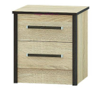 Недорогая прикроватная тумба для спального гарнитура лирика с двумя выдвижными ящиками и темным декором в цвете венге.