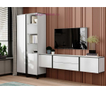 Закрытый шкаф пенал белого цвета с контрастной отделкой в цвете графит. Внутри пенала 5 полок. Пенал шириной 45 см с высокими опорами подходит для мебели в гостиную Амара, но может быть куплен и как отдельный предмет.