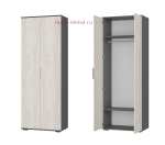 Двухстворчатый платяной шкаф шириной 80 см с поперечной штангой внутри. Шкаф сочетается с мебелью для гостиной Плаза и выпускается в сочетании цветов графит серый и светлого древесного декора дуб крафт белый. Внутри шкафа помимо штанги для одежды две полки.